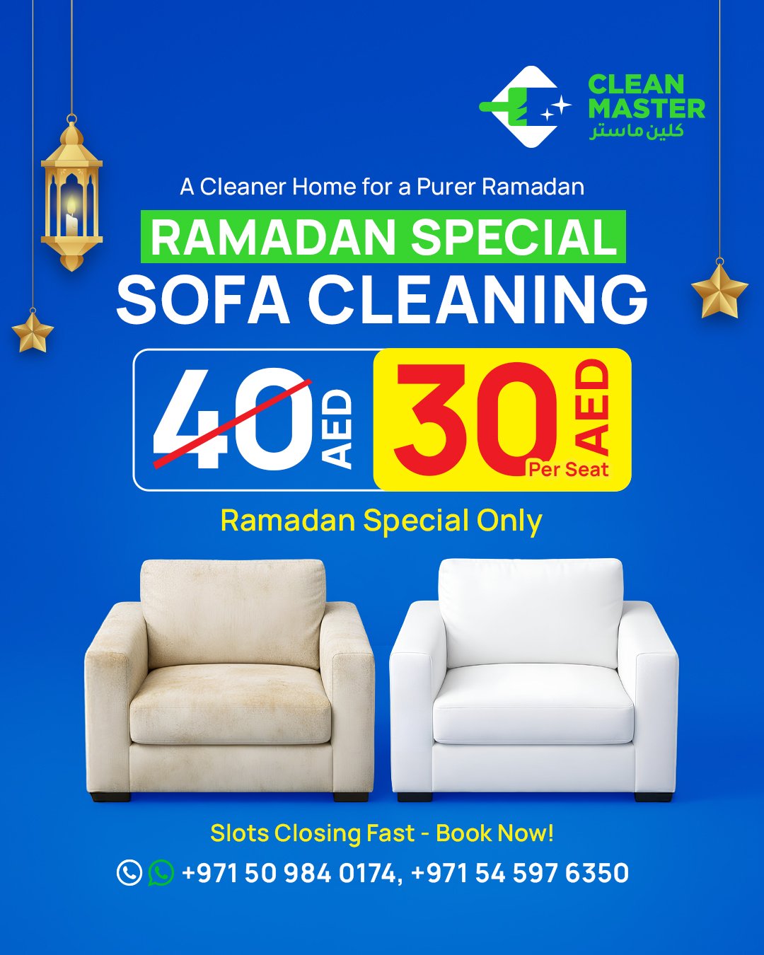 Schedule your deep clean with a quick call, email, or WhatsApp message.
